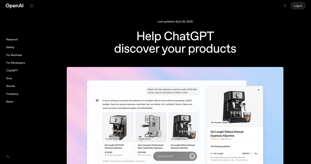 Inscrivez-vous au formulaire d’intérêt d’OpenAI pour être alerté lorsque la soumission de catalogues produits sera ouverte.